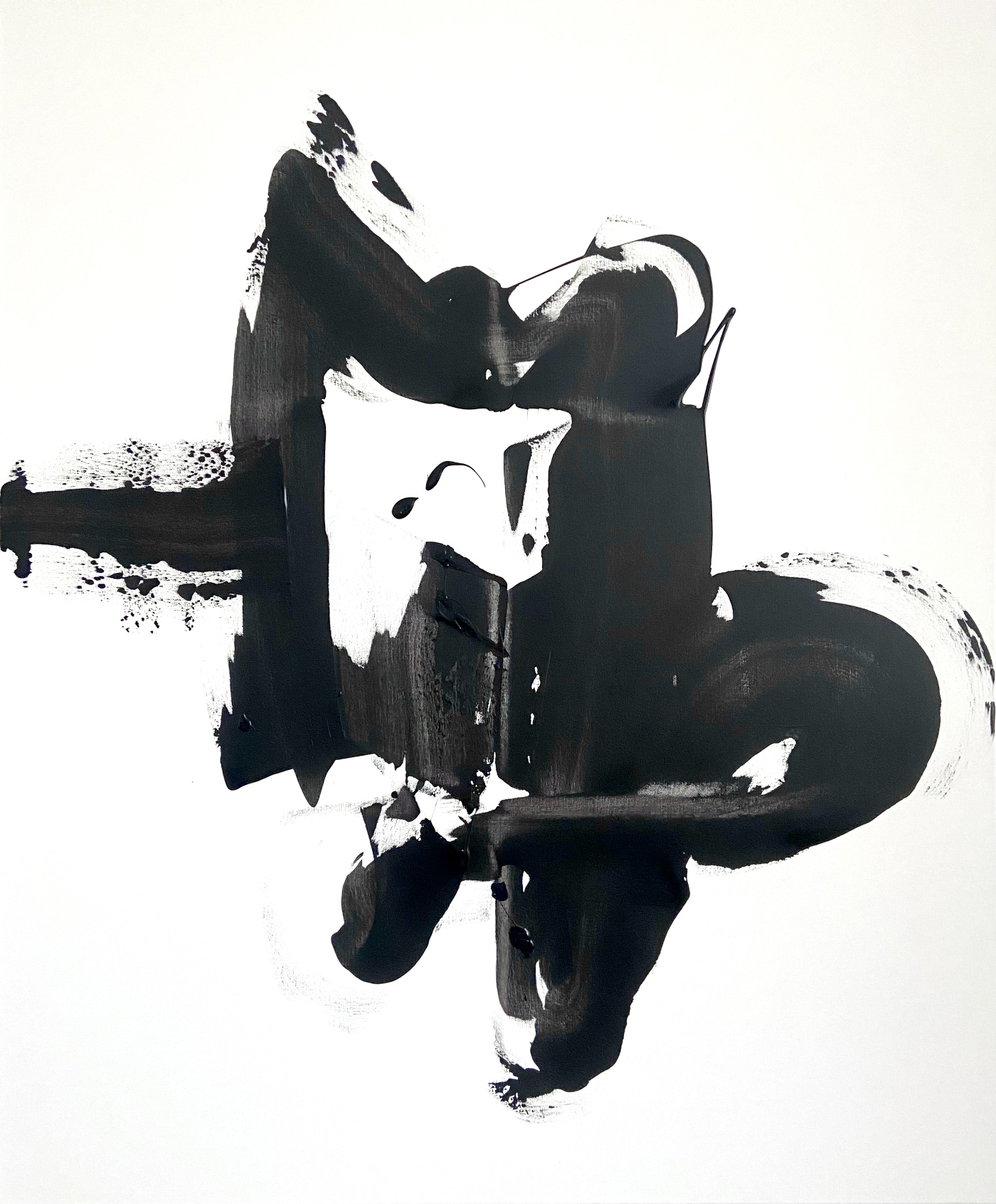 The artist Simone Kaltenegger limits herself in the Black Track Series to the color black on white canvas. For this she resorts to the medium of acrylic. As a painting tool she uses shower squeegees or a sponge. In her painting practice she works, while listening to techno music, unplanned and impulsive and thus brings deep existing emotions on the canvas. The paintings are often abstract figurative, but also reminiscent of Asian calligraphy. In the end, a work of art is created, similar to an inkblot, which offers the viewer scope for their own interpretations and feelings.